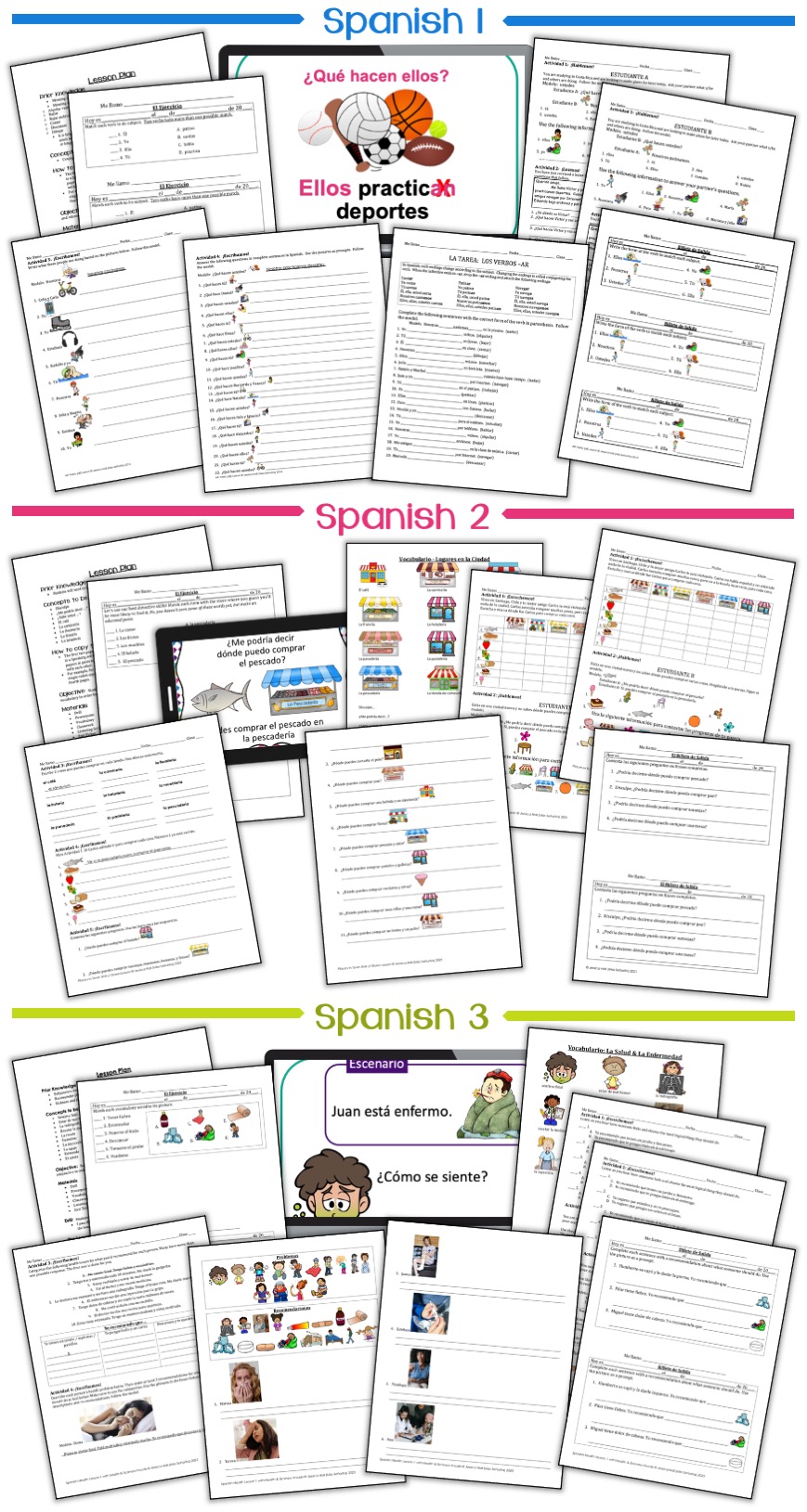 Get access to an entire school year's worth of Spanish 1, 2, or 3 resources.
